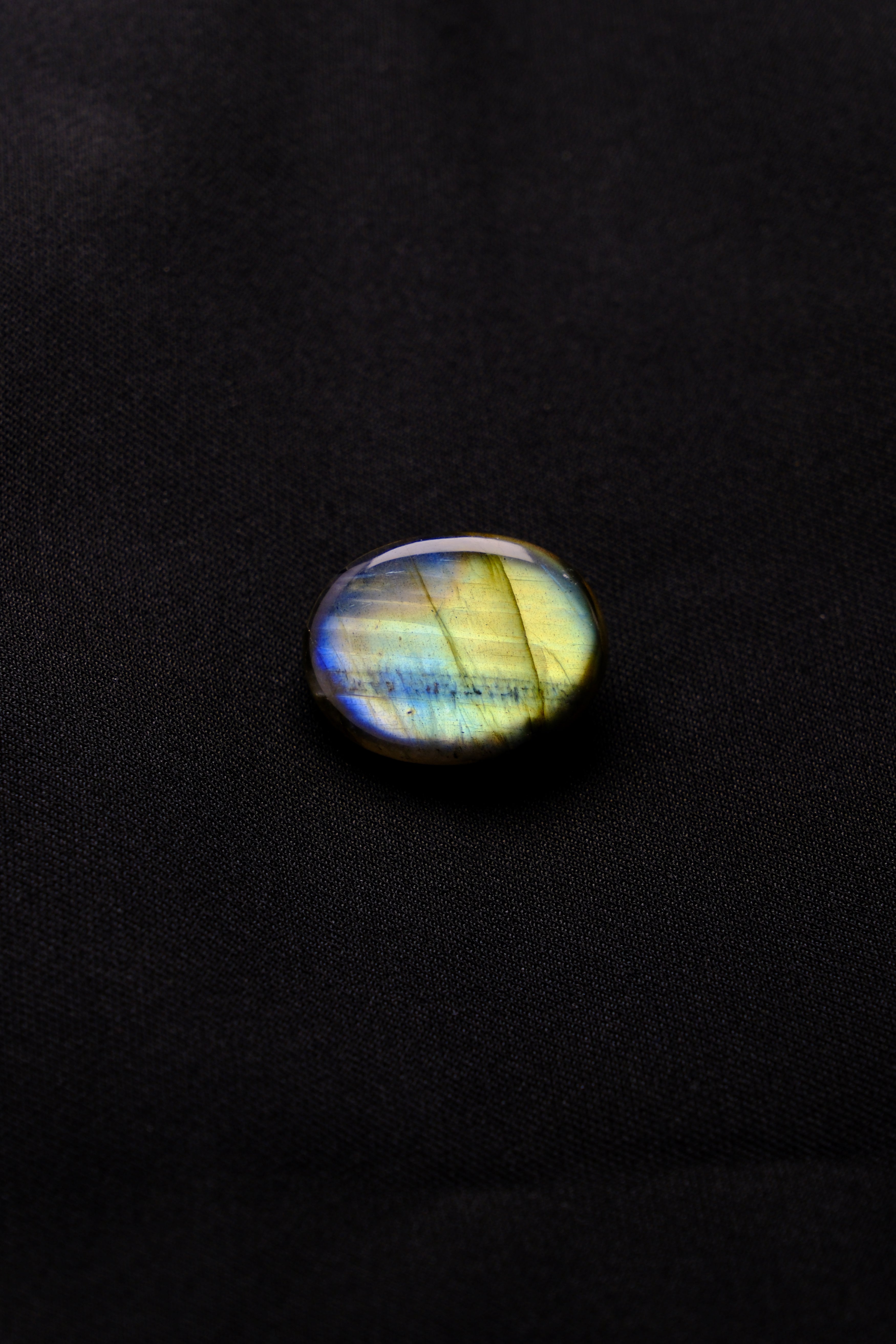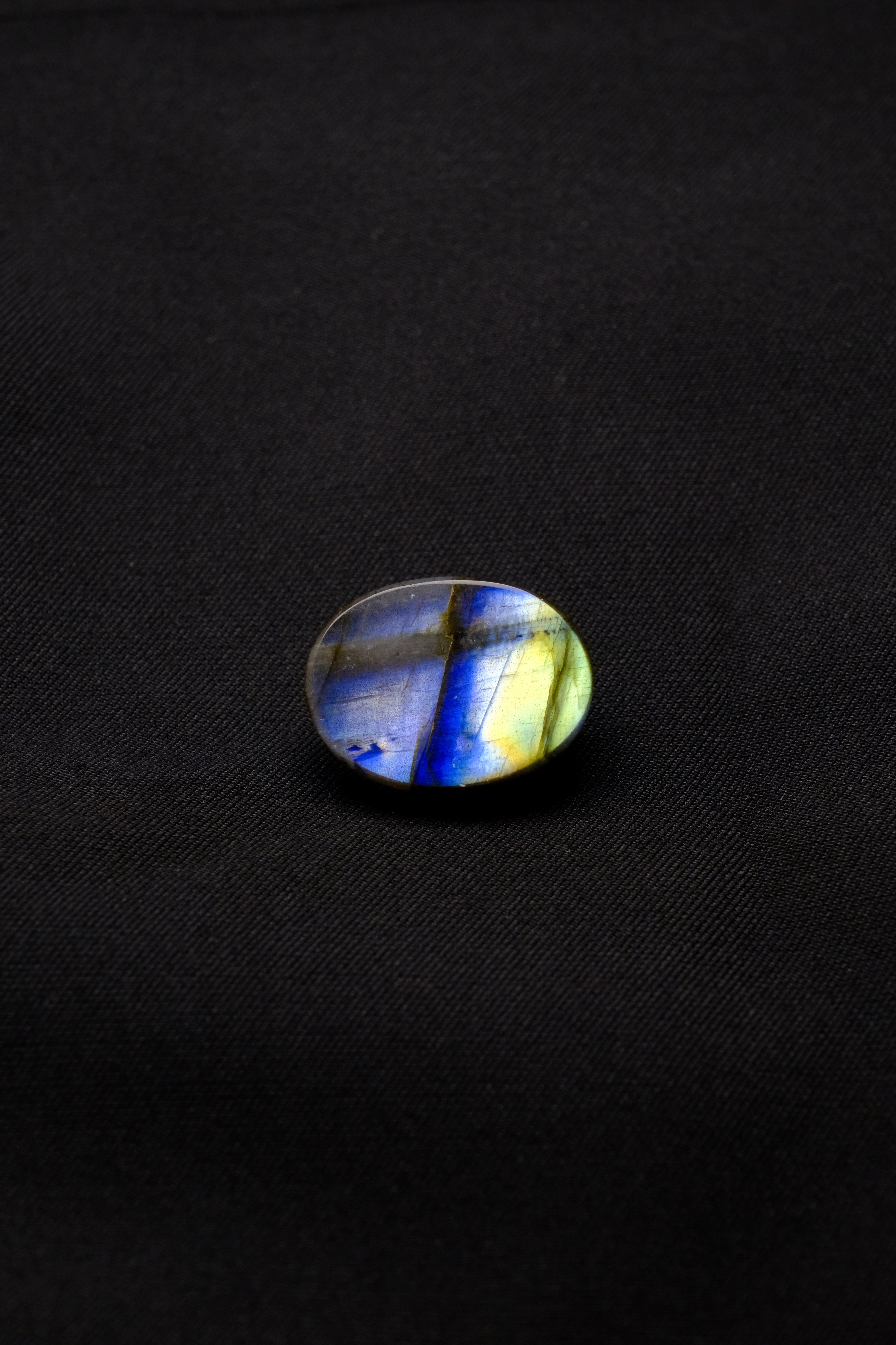 Elongated Oval Labradorite Cabochon: Golden and Purple Iridescence