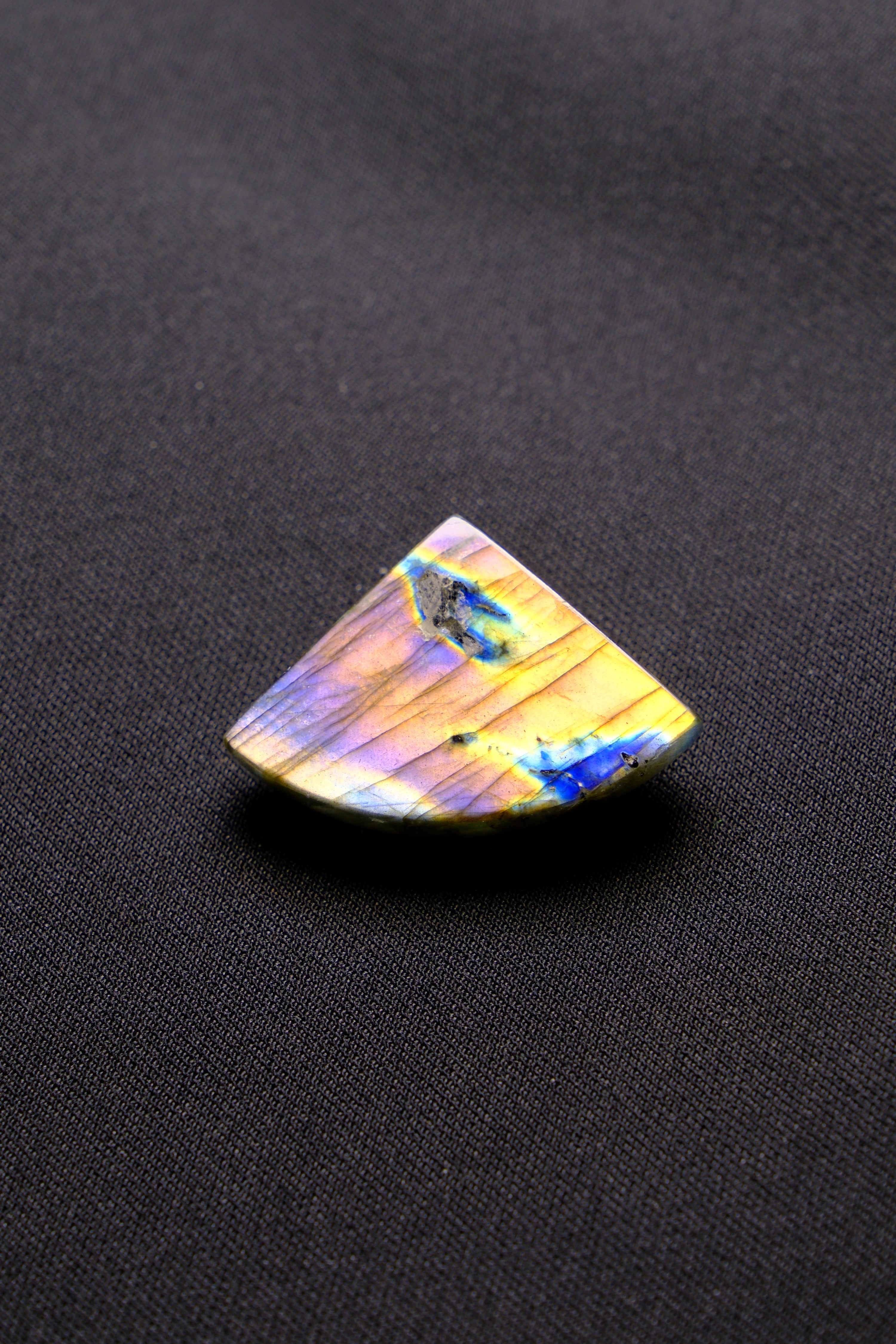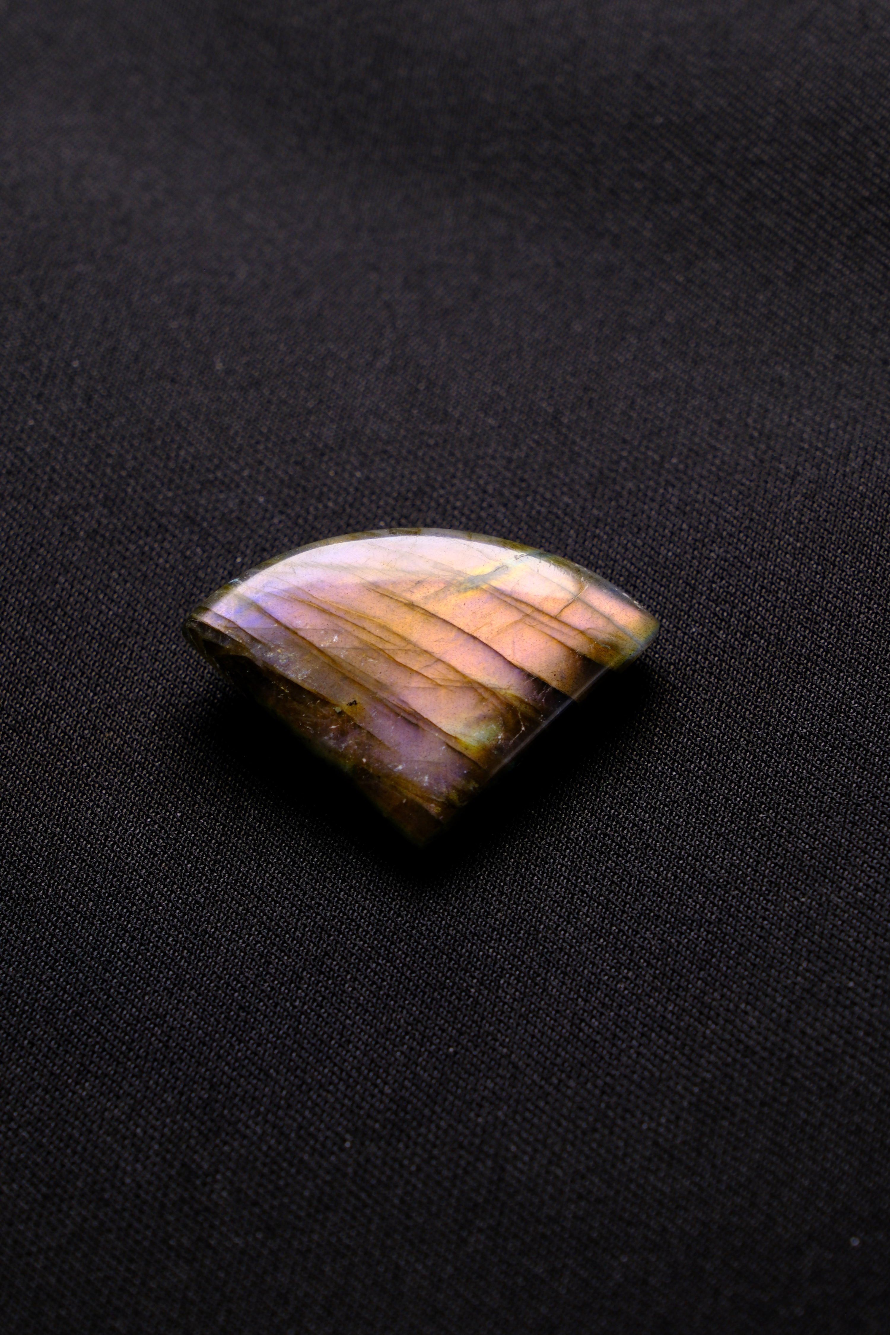 Golden Pink Fan-Shaped Labradorite Cabochon - Unique Sunset Glow