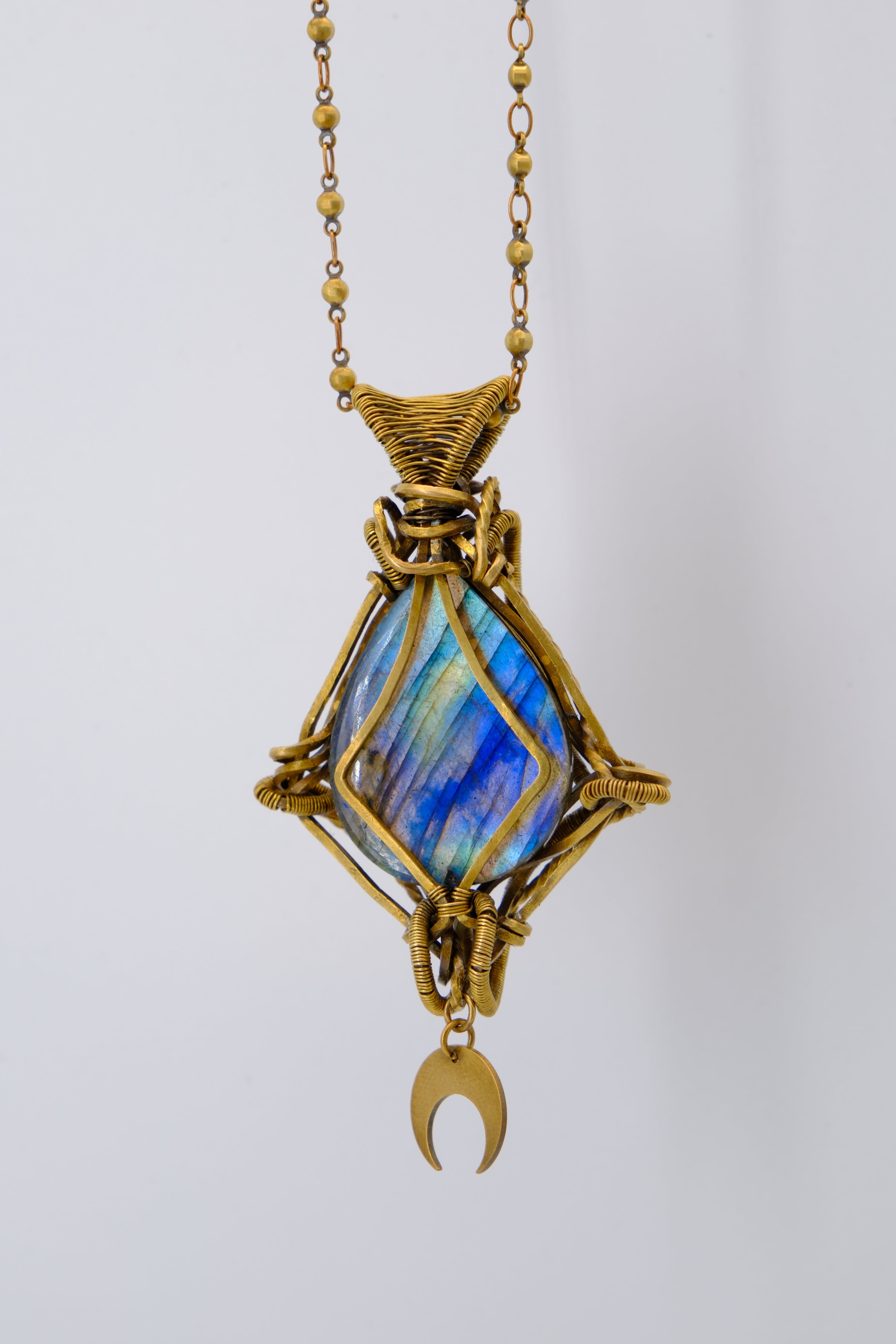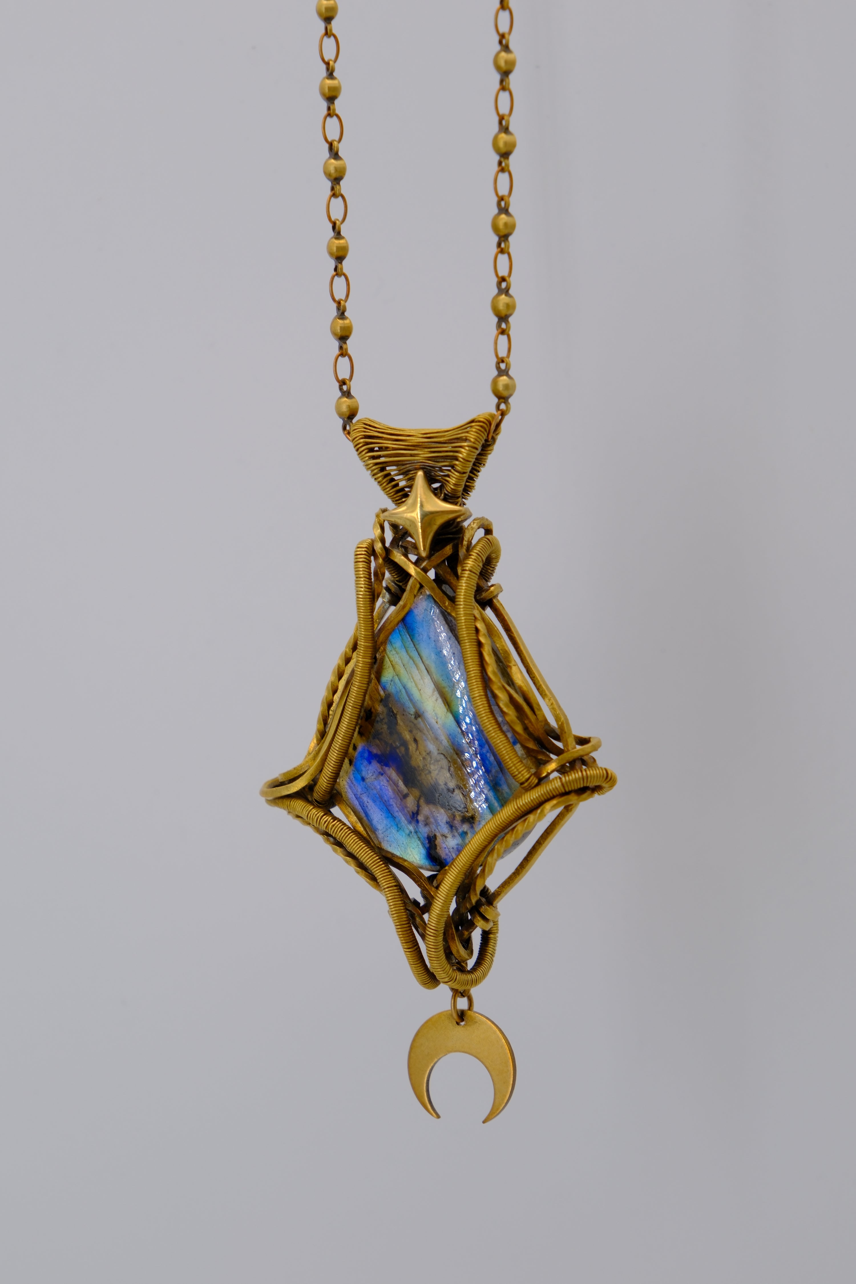Golden Wire-Wrapped Labradorite with Celestial Accents