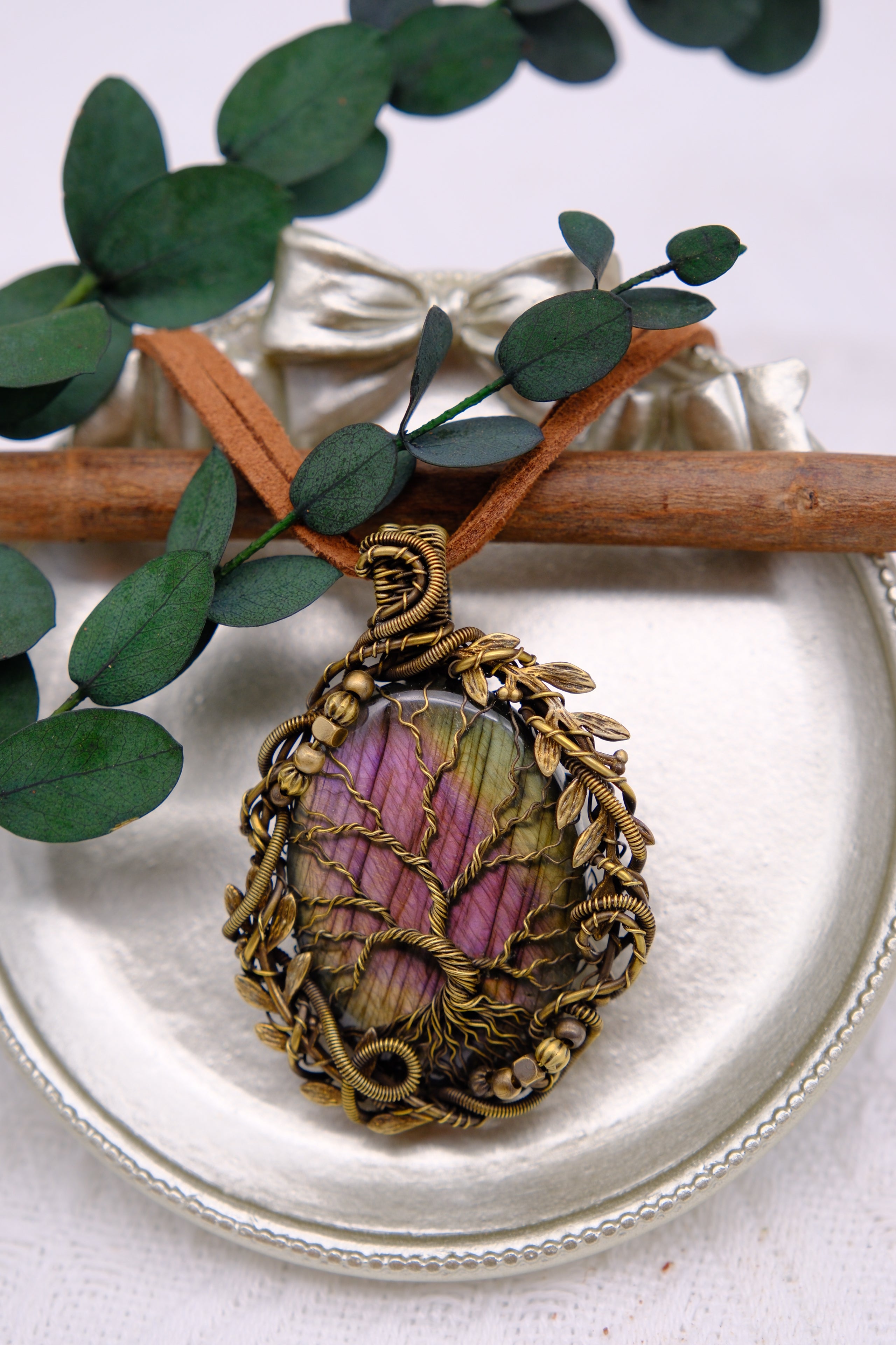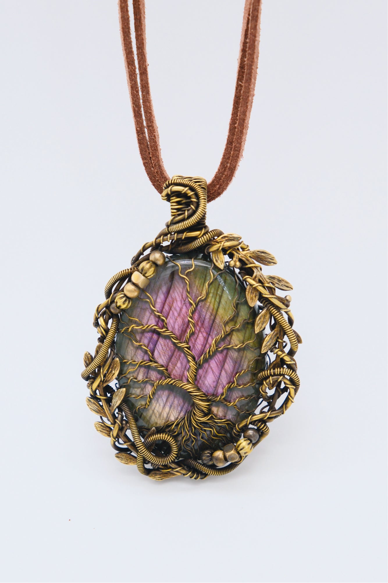 Purple Mist of Life Tree Pendant Necklace with Labradorite