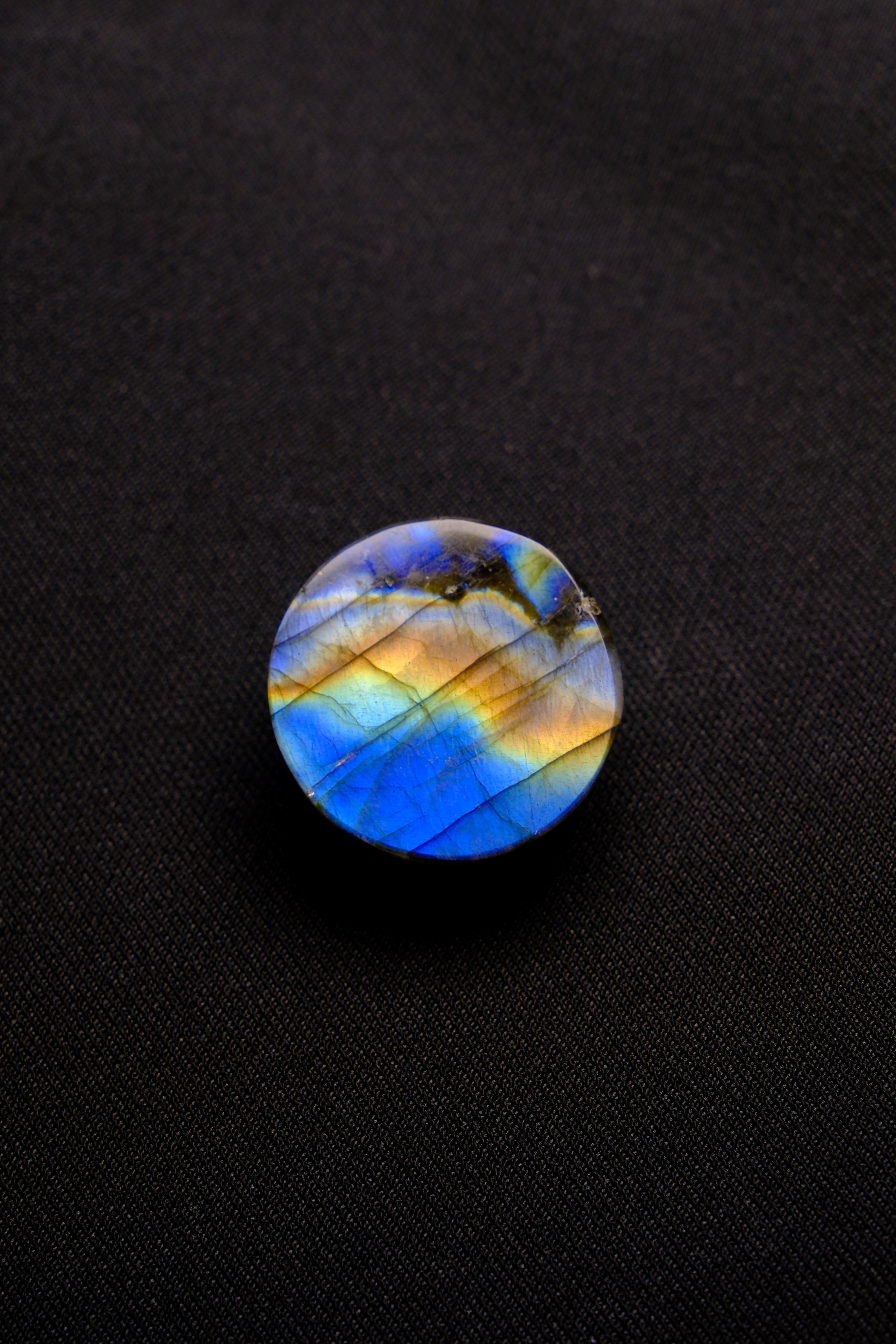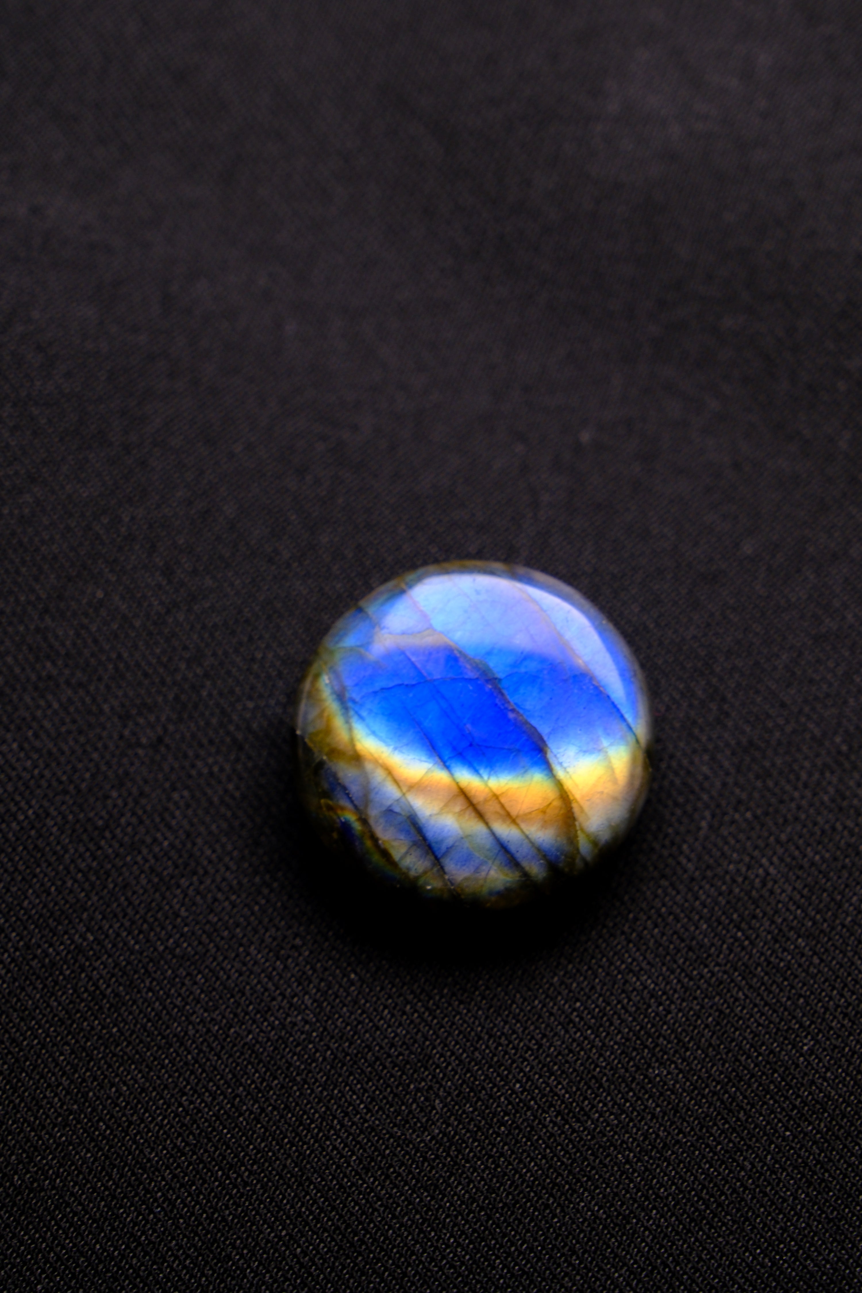 Radiant Blue Round Labradorite Cabochon - Iridescent Blue and Gold Flash